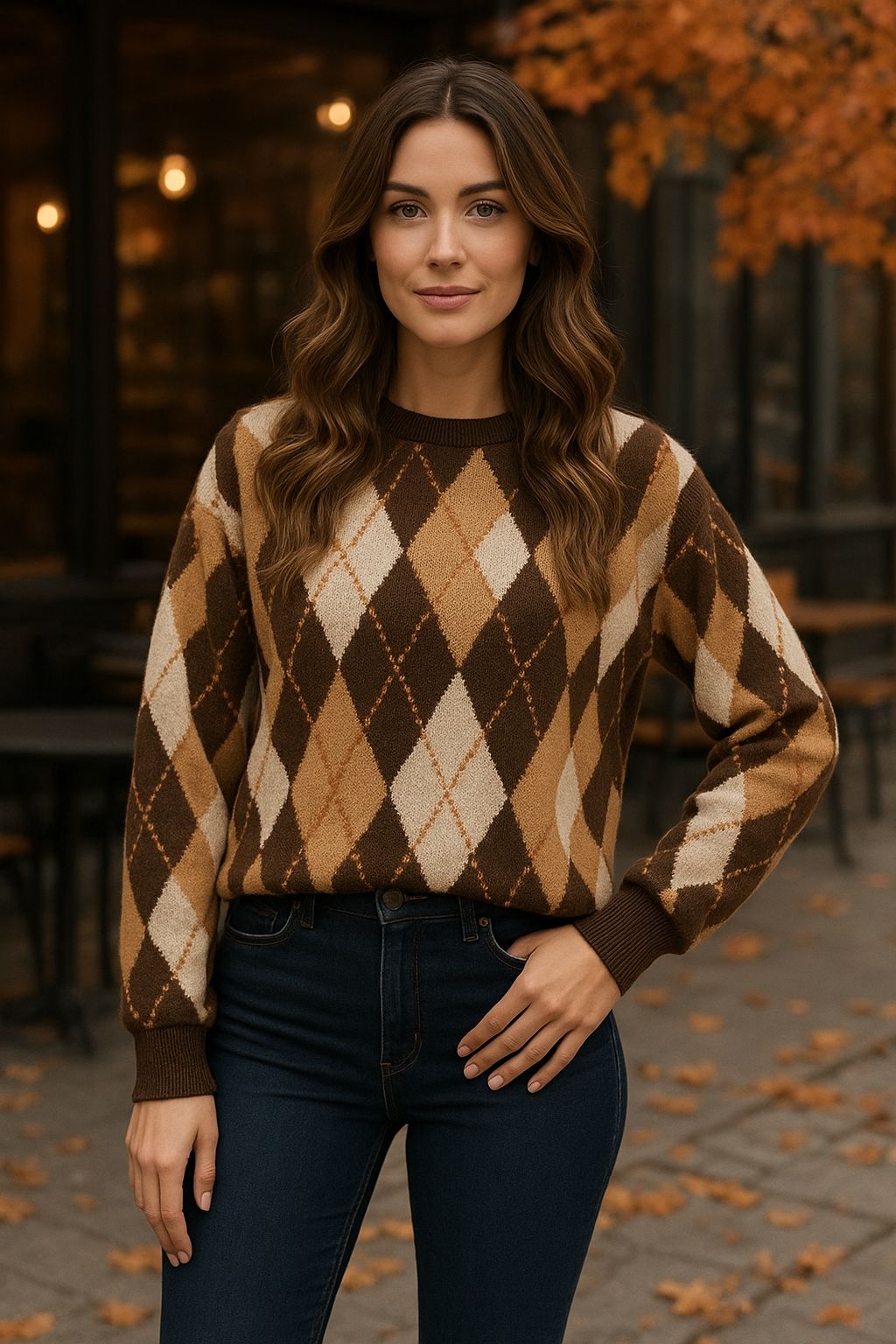 Baklava deseni, birçok farklı stil ile kolayca kombinlenebilir. Bu kazağı, klasik bir beyaz gömlekle birlikte, şık bir pantolonla günlük ofis stilinize şıklık katacak şekilde giyebilirsiniz. Ayrıca, kot pantolon ve spor ayakkabılarla kombinleyerek rahat bir alışveriş günü için mükemmel bir seçenek oluşturabilirsiniz. Bahar ve sonbahar aylarında sıcak tutacak üzerine alabileceğiniz bir ceket ile de şıklığınızdan ödün vermeden dışarıda geçireceğiniz zamanlarda kullanılabilir.