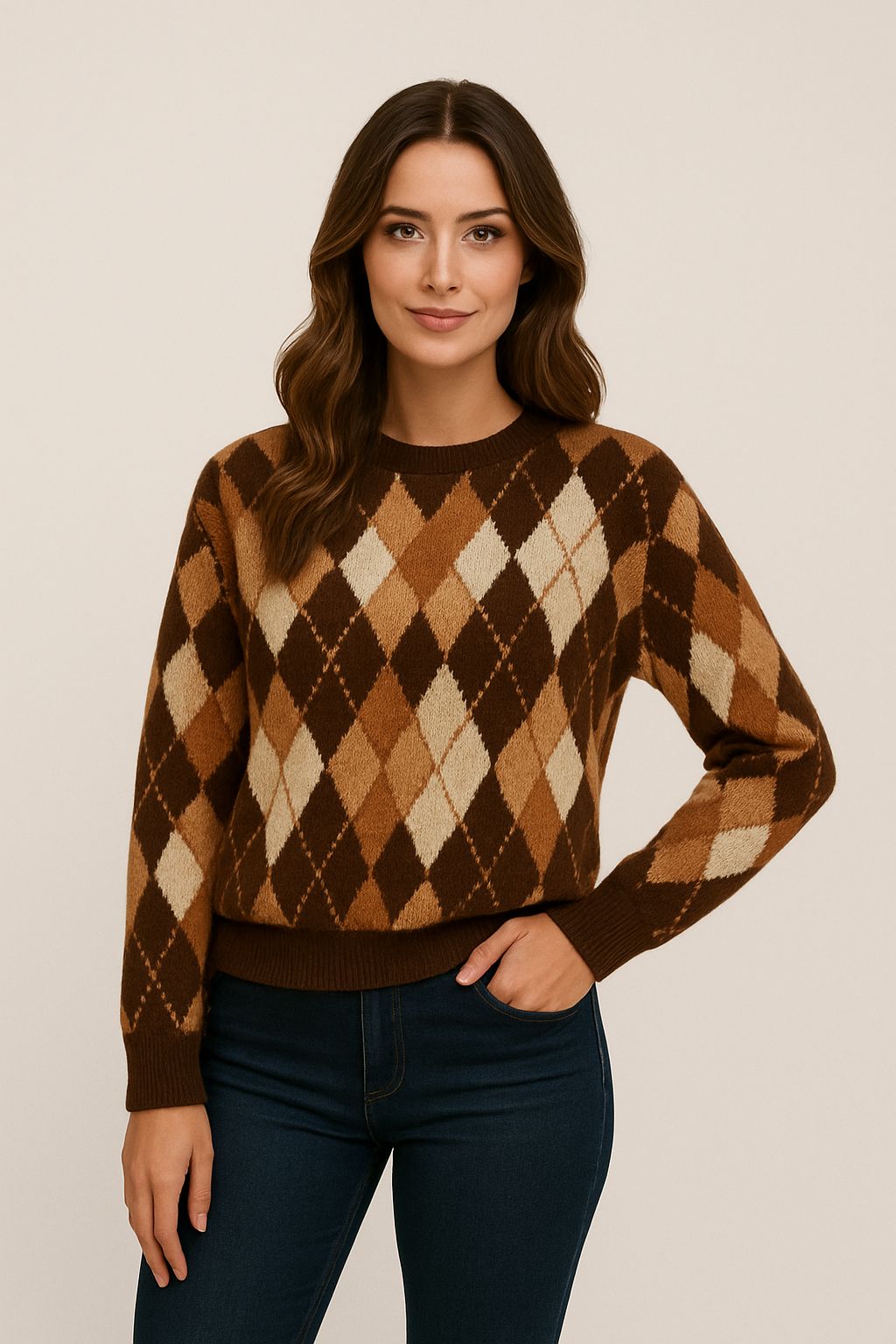 Kahverengi Küçük Baklavalı Kazak, stil ve konfor arayan herkesin tercih edebileceği bir seçenek. Benzersiz deseni ve kaliteli yapısıyla bu kazak, her anınızı özel kılacak! Siz de bu eşsiz parça ile tarzınıza yeni bir boyut kazandırın!