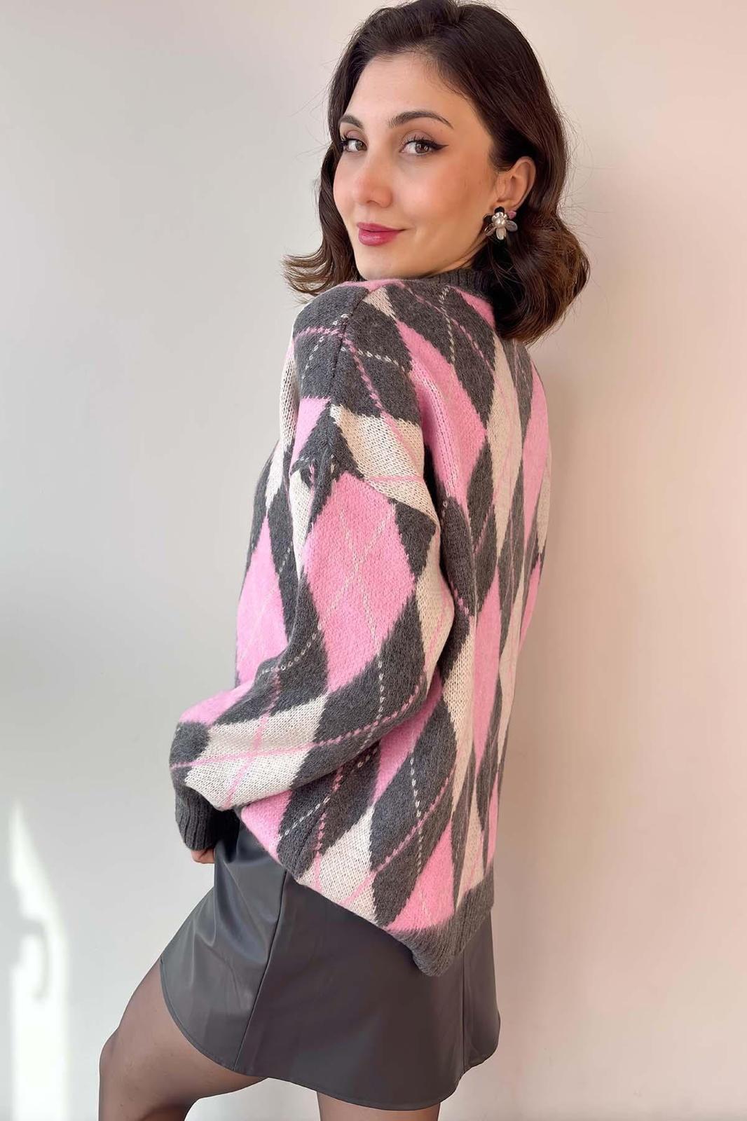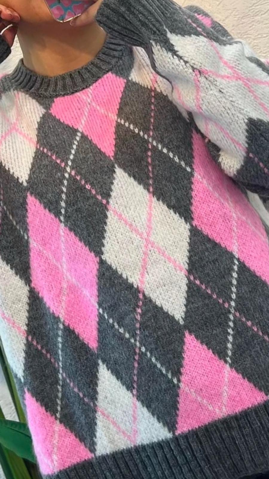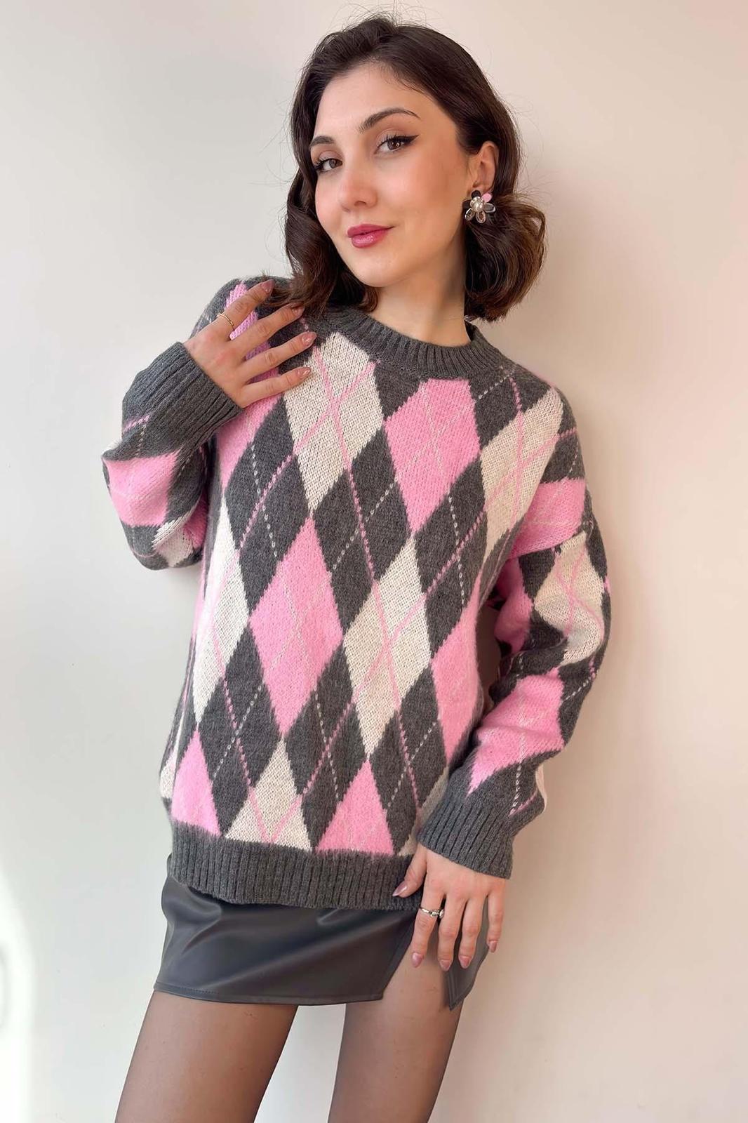 Baklava Desen Triko Kazak Gri Pembe, zarafeti ve kalitesiyle tarzınızı tamamlayacak bir kazaktır. Özellikle soğuk havalarda vazgeçilmez bir parça olan bu triko kazak, tasarımı ve rengiyle dikkat çekicidir.