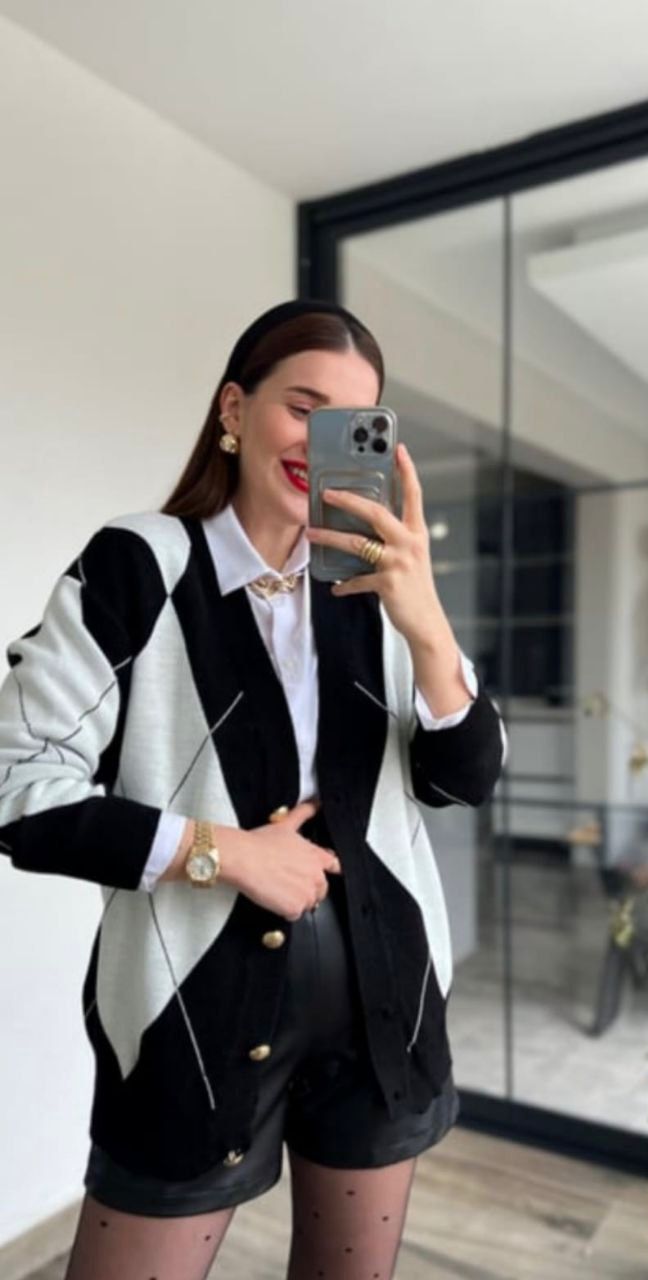 Baklava desenli uzun hırka lacivert, her mevsim rahatlıkla kullanabileceğiniz bir parçadır. Üstelik, her tarzla da kolayca kombinlenebilir. Pantolon, etek veya elbise ile kombinleyerek şık bir görünüm elde edebilirsiniz.