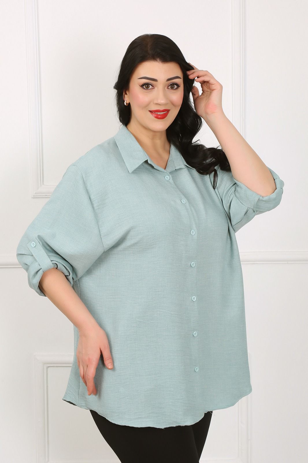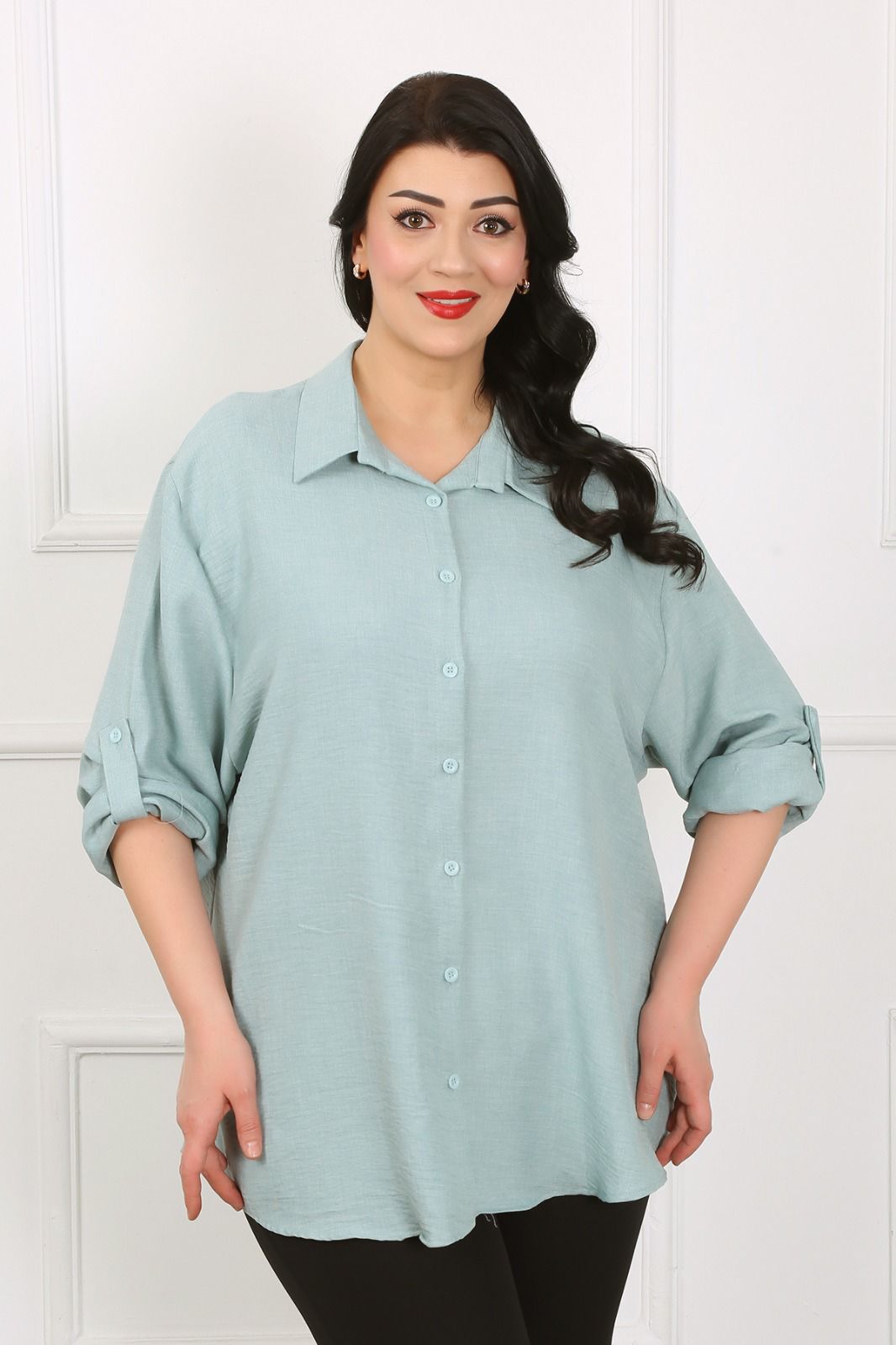 Büyük Beden Keten Gömlek (44 -54) - Su Yeşili