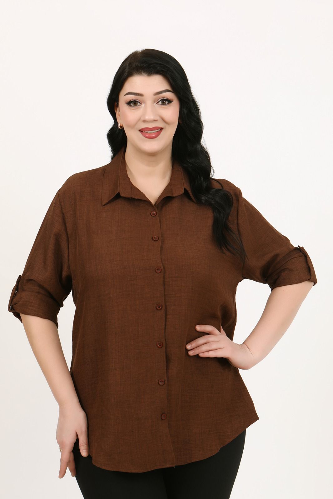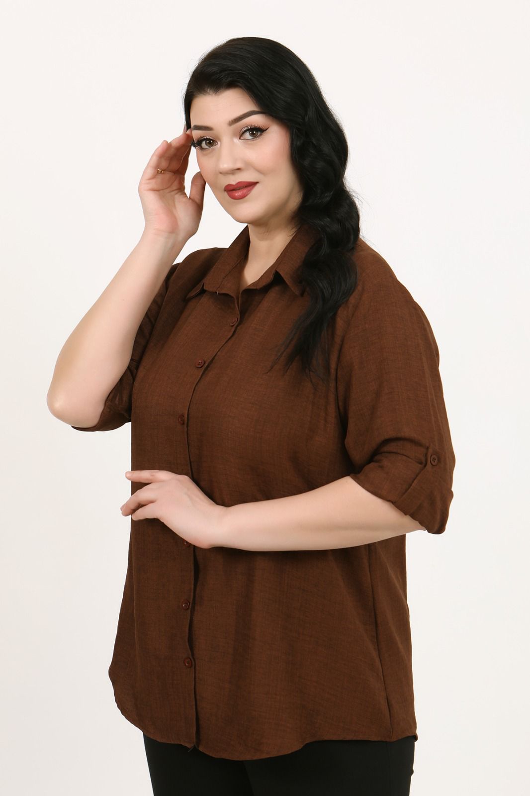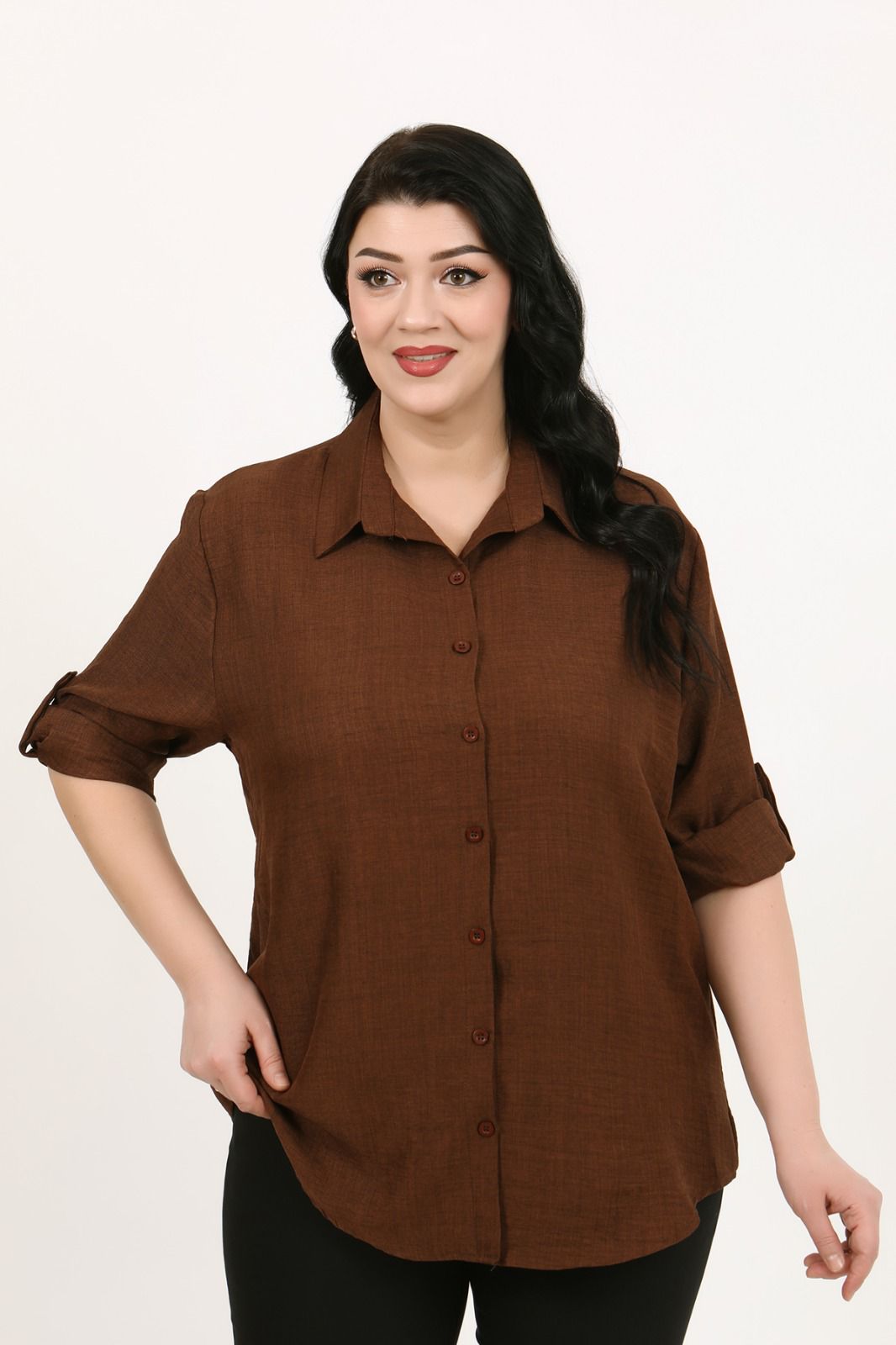 Büyük Beden Keten Gömlek (56 -64) - Kahverengi