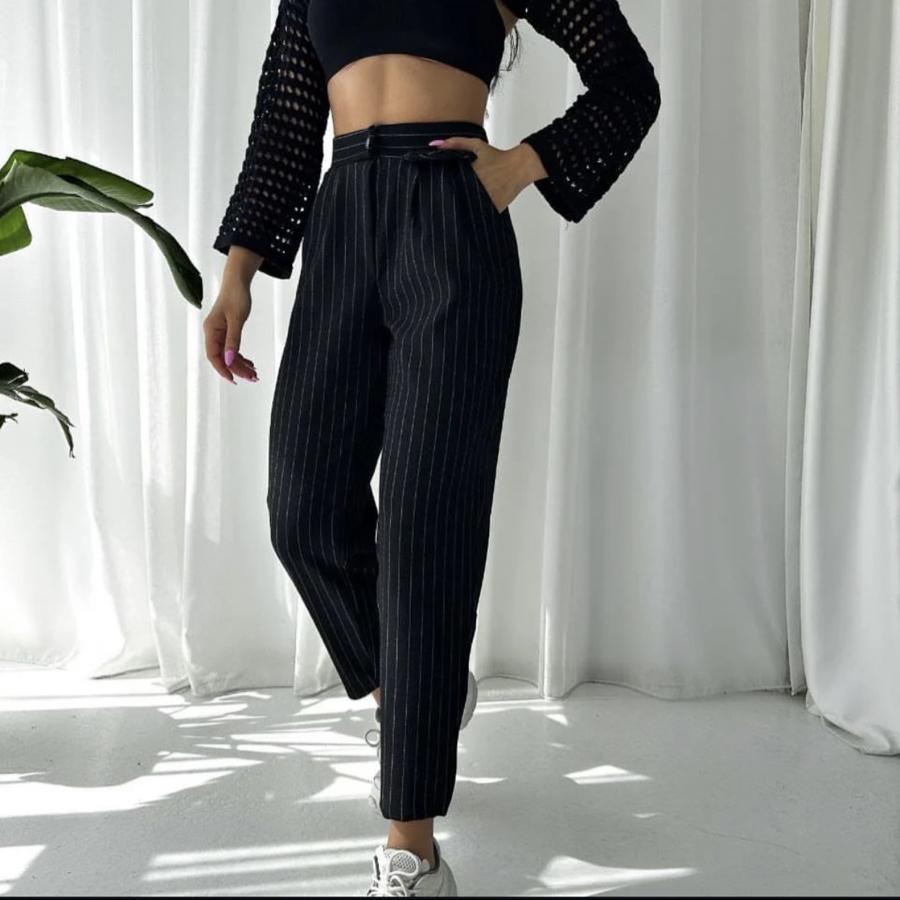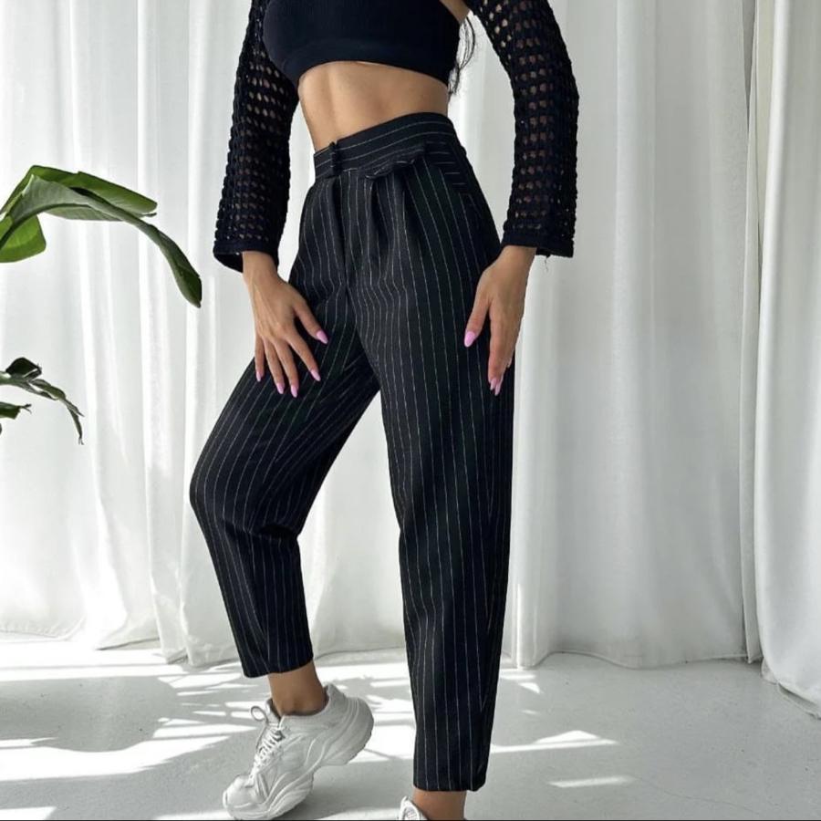 Çizgili Siyah Likralı Pantolon