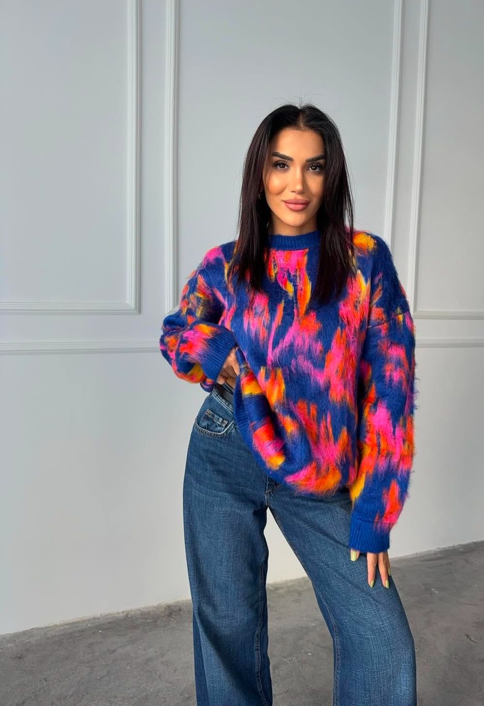 Karişık renkli yumuş etnik desen kazak, her yaştan ve her tarzdan kişinin gardırobunda mutlaka bulunması gereken bir parçadır. Hem günlük hayatta hem de özel günlerde rahatlıkla kullanılabilecek bir üründür. Aynı zamanda kaliteli kumaşı ve el işçiliği detaylarıyla uzun ömürlü bir kazak olması, onu yatırım yapılması gereken bir giyim parçası haline getirir.