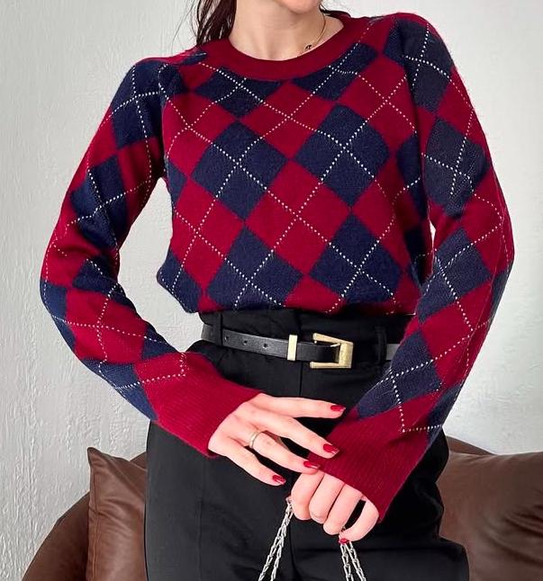 Kazak Triko Baklava Desen Bordo, kaliteli triko kumaştan üretilmiş muhteşem bir kazaktır. Bu kazak, Türk kültüründe önemli bir yere sahip olan baklava deseniyle tasarlanmıştır. İnce detaylara sahip bu desen, kazaka modern ve şık bir görünüm kazandırmaktadır.