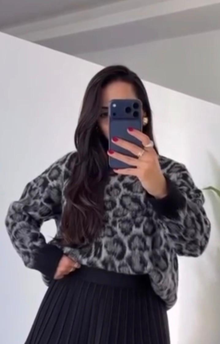 Leopar Desen Siyah Standart Beden Oversize Kazak, zarif ve rahat görünümü bir araya getiriyor. Hem gündelik hem de özel anlar için ideal olan bu ürün, modayı yakından takip eden kadınların tercihi olacak. Şimdi online mağazamızdan sipariş vererek bu şık kazağa sahip olabilirsiniz!
