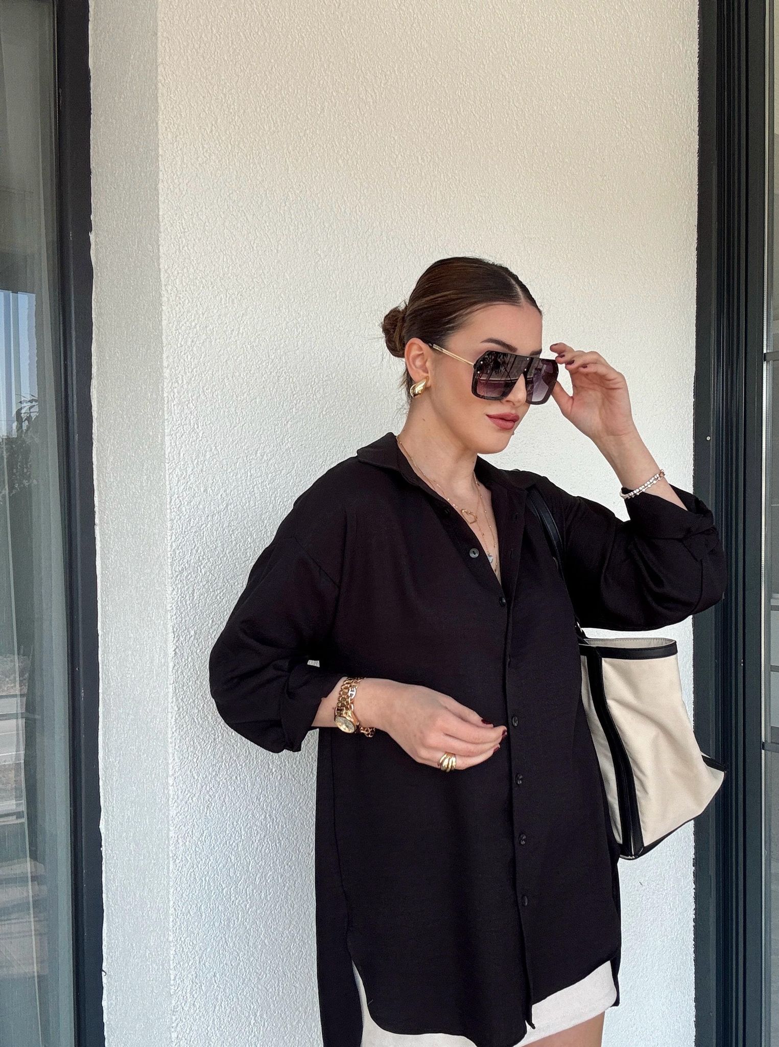 Bu şık uzun gömleği, çeşitli kombinlerle zenginleştirebilirsiniz. Özellikle dar paça pantolonlar, taytlar veya şortlarla mükemmel bir uyum sağlar. Ayrıca, spor ayakkabılarla günlük, topuklu ayakkabılarla ise şık bir akşam görünümü yaratabilirsiniz. Aksesuarlarınızı ekleyerek tarzınızı kişiselleştirebilir, her ortamda dikkat çekici bir görünüm elde edebilirsiniz.