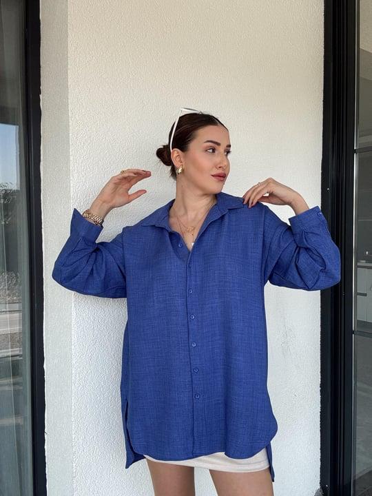 Oversize Geniş Kalıp Uzun Gömlek Mavi