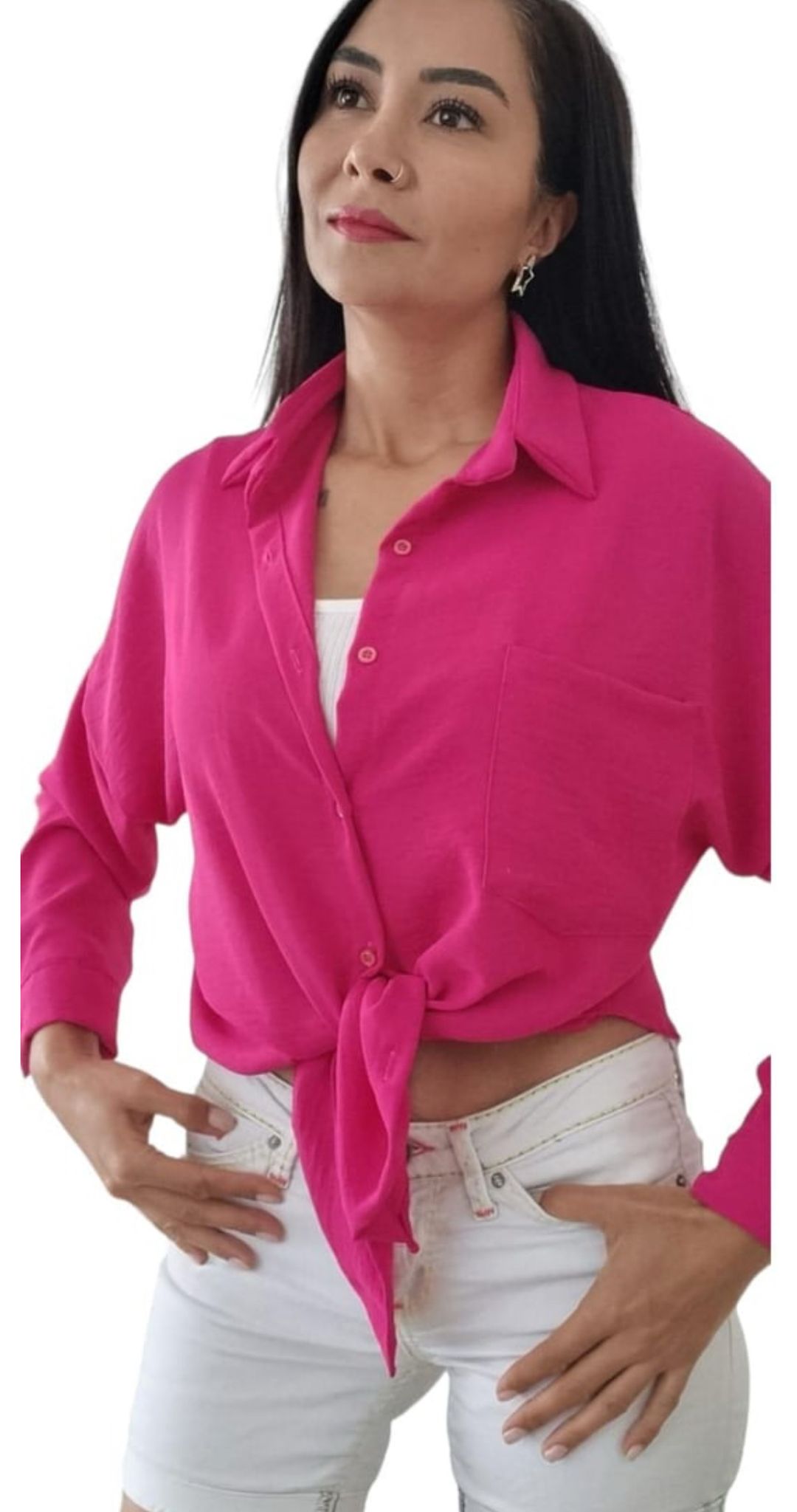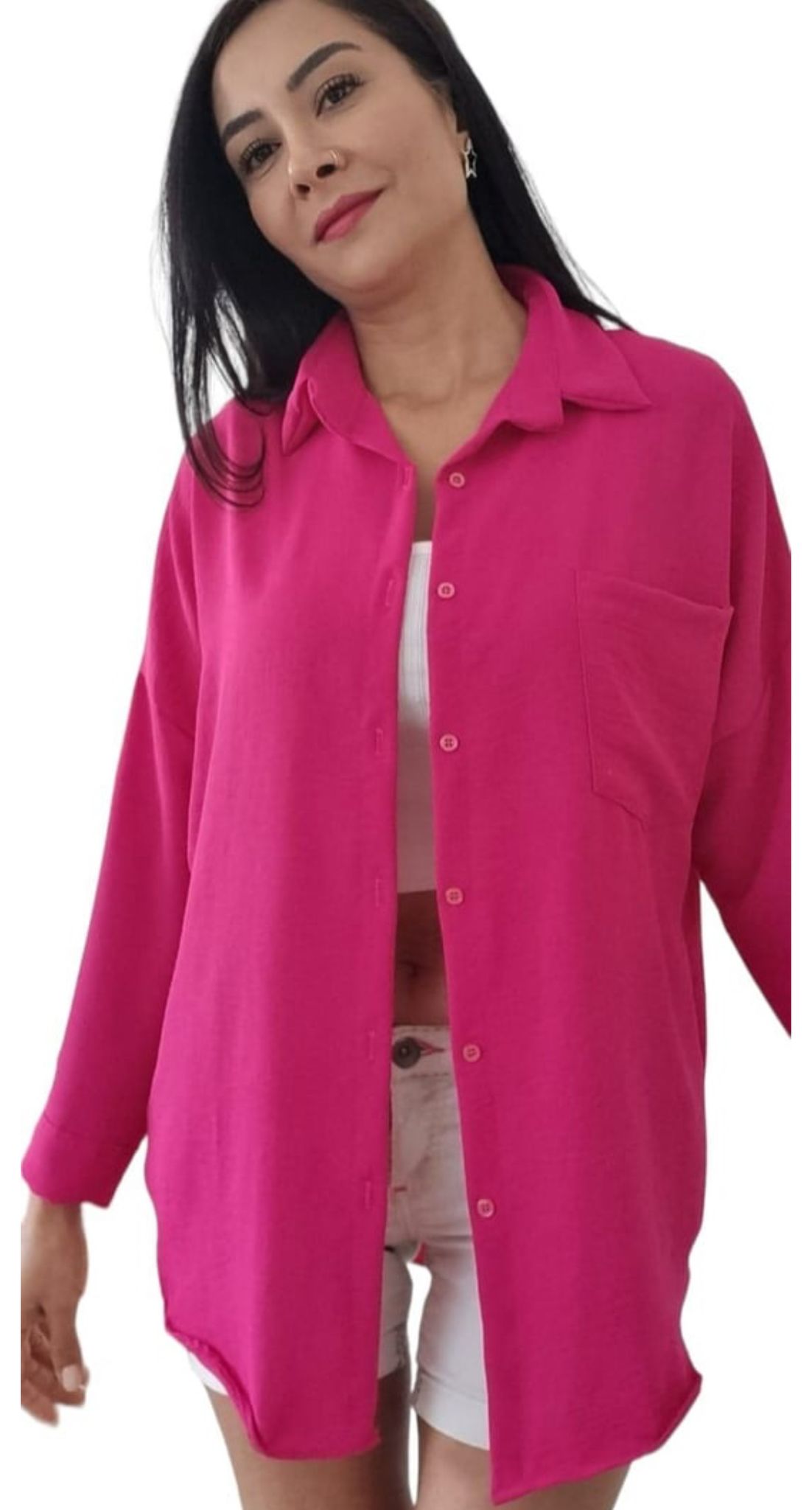 Bu keten gömlek, baharın ve yazın enerjisini yansıtan fuşya rengi ile dikkat çekerken, oversize yapısı sayesinde gün boyu konforu ön planda tutar. Rahat kesimiyle tıpkı bir elbise gibi giyebilir, isterseniz pantolon ya da şortlarla kombinleyerek stilinizi yansıtabilirsiniz. Özel günlerde ya da günlük hayatta tercih edebileceğiniz bu gömlek, dolabınızda yer almayı bekliyor.
