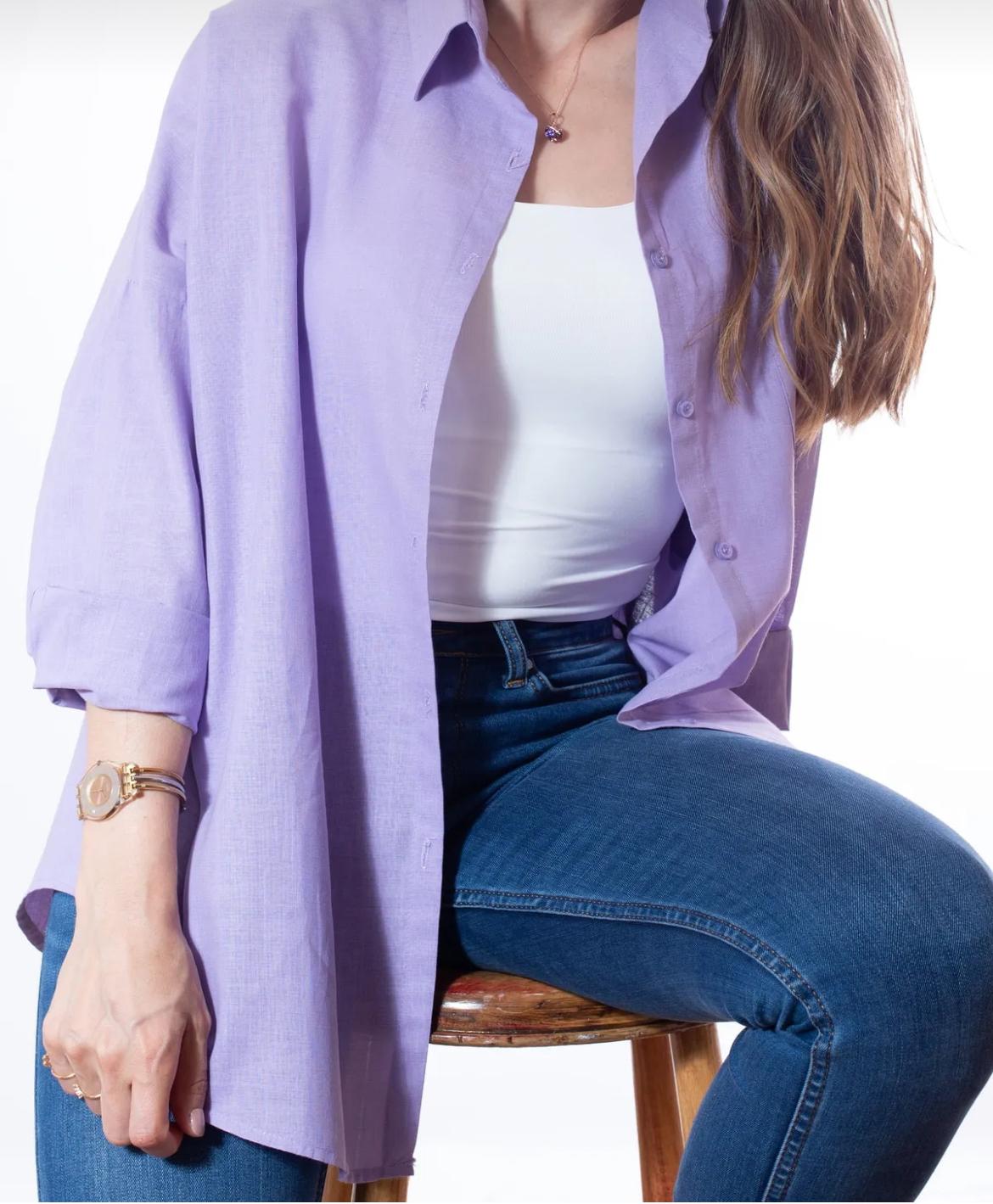 Oversize Uzun Keten Gömlek - Lila