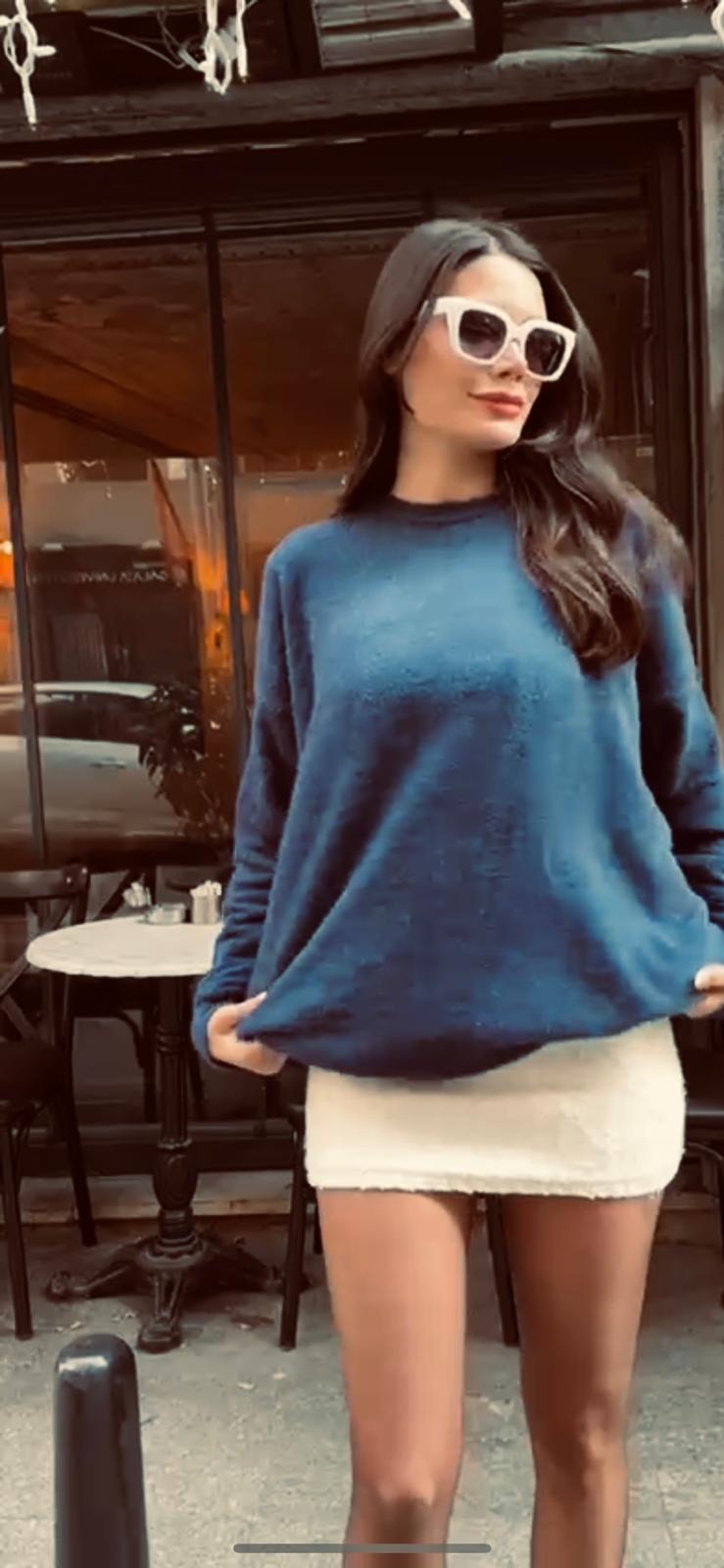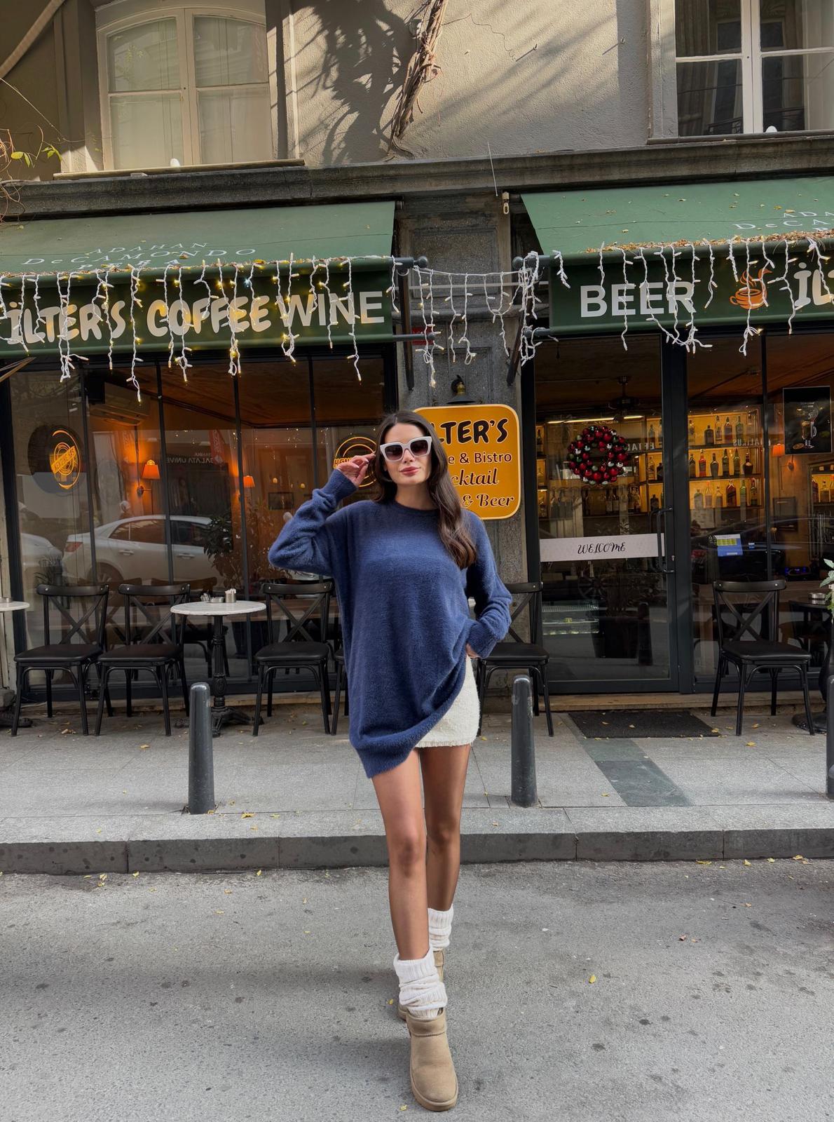 Güzellik avuçlarınızın içinde! Oversize yumuşak lacivert kazak, hem rahatlığı hem de şıklığı bir araya getiriyor. Bu kazak, günümüz moda anlayışına uygun tasarımıyla, serin havalarda stilinizi tamamlayacak en ideal parça.
