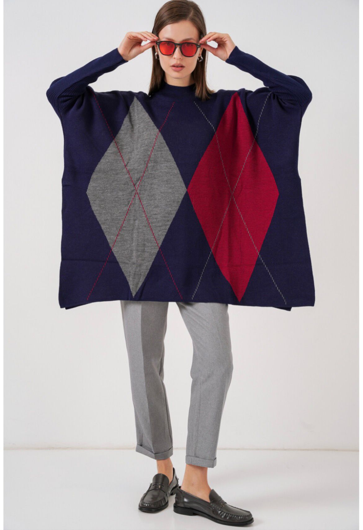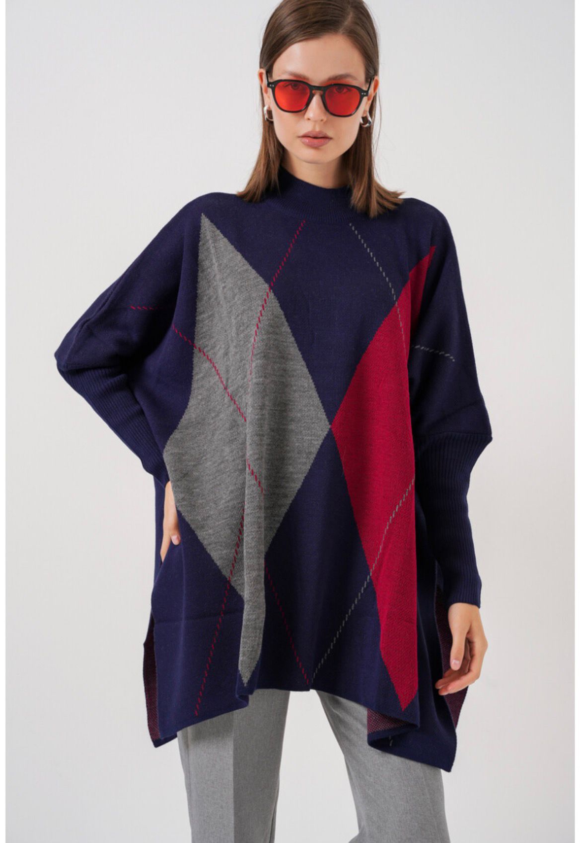 Bu şık panço kazak ile çekilmiş fotoğraflarınızı sosyal medya hesaplarınızda paylaşmayı unutmayın! #BaklavaDesen #PançoKazak #LacivertKazak etiketi ile paylaşarak stilinizi takipçilerinizle buluşturun.