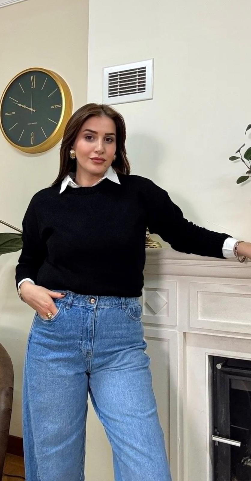Klasik bir görünüm için siyah kazak ile denim bir pantolon ve beyaz spor ayakkabı kombinleyebilir, günlük şıklığınızı artırabilirsiniz. Daha şık bir görünüm için, kazak altına yüksek bel bir etek ve topuklu ayakkabılar ile kombin yapabilir, akşam davetlerinde göz alıcı olabilirsiniz. Ayrıca, sıcak havalarda yazlık şortlar ile de rahatça kombinleyerek sezon geçişlerinde kullanabilirsiniz.