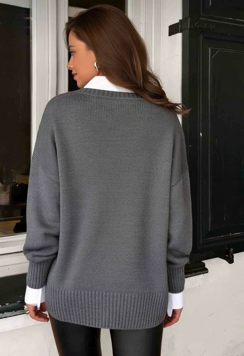 Yumuşak Standart Beden V Yaka Kazak - Gri