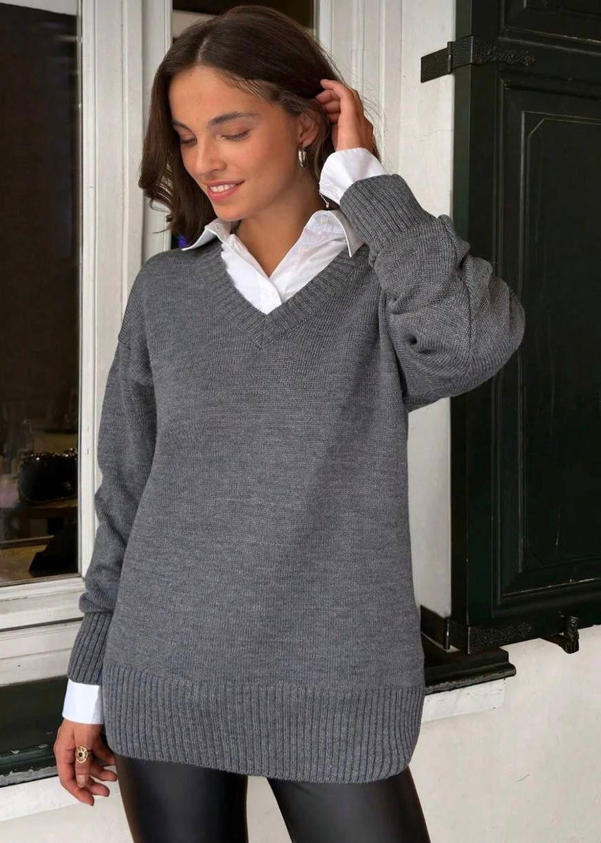 Yumuşak Standart Beden V Yaka Kazak - Gri, şık ve rahat bir görünüm arayan herkes için ideal bir parçadır. Günlük tarzınızı tamamlamak veya farklı ortamlarda şık görünmek için en iyi tercihlerden biridir. Kalitesi ve modern tasarımı sayesinde dolabınızdaki yerini alacak ve her sezon keyifle kullanacaksınız.